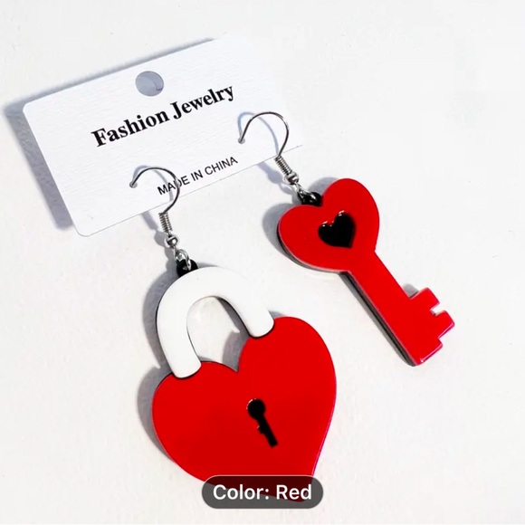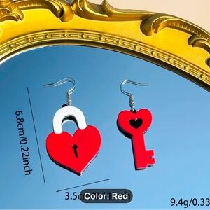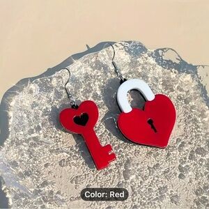 Creative Valentine's Day Acrylic Red Heart Lock Key Drop Earrings Valentine's Day Gift For Women