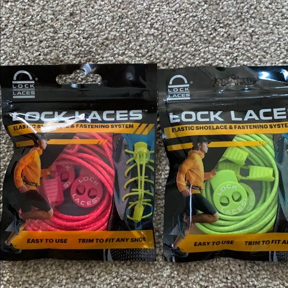 Two lock laces one in green and the other in pink. Selling for $10 each.