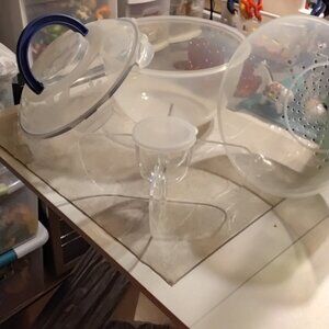 Lock & Lock 6.3 qt Crudité/Fruit Bowl w/divider/Colander and dip cup
