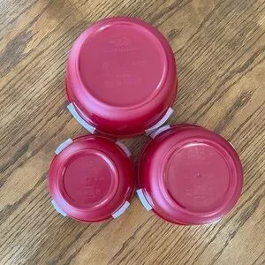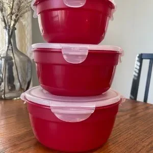 Keep your food fresh with this stylish red airtight container set. Perfect for storing leftovers or meal prepping. Easy to use and clean. Never been used.