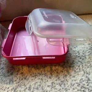Organize your kitchen with the pink food storage container set. Ideal for meal prep and keeping leftovers fresh. Set includes all four.
