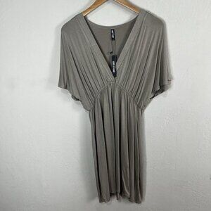 Lock & Love 2 Short Sleeve Kimono Style Deep V Neck Casual Summer Dresses L NEW