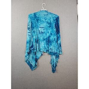 Lock & Love Aqua Blue Tie Dye Open Trapeze Cardigan Women's Plus 3XL Stretch