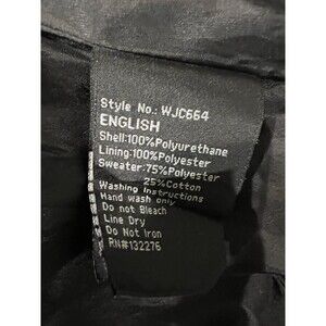 The Lock & Love Women's Black Faux Leather Jacket in size Small is a stylish and edgy choice for women who love the motorcycle lifestyle. Made of durable faux leather with a short length and long sleeves, this jacket features a zip closure for convenience. The black color and biker theme make it perfect for casual outings or travel, while the polyester lining provides added comfort. This jacket from the brand Love & Lock offers a blend of fashion and function for the modern woman who appreciates the adventurous spirit. 18 inches pit to pit, 16 inch shoulders and 22 inches long.