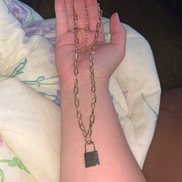 Gold lock chain necklace