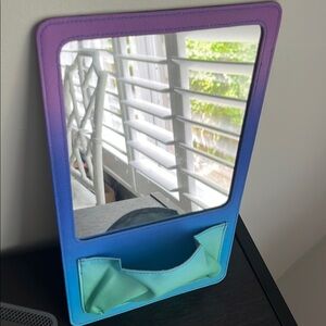 mirror with a gradient frame and storage pocket. Includes a set of sports-themed magnets and pencil and pen metal holder. All 3
