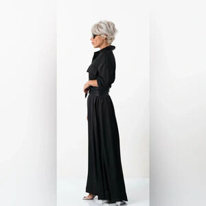 Locker Room ELEGANT MAXI BLACK SHIRT DRESS WITH VEGAN LEATHER BELT Size S/M/L/XL
