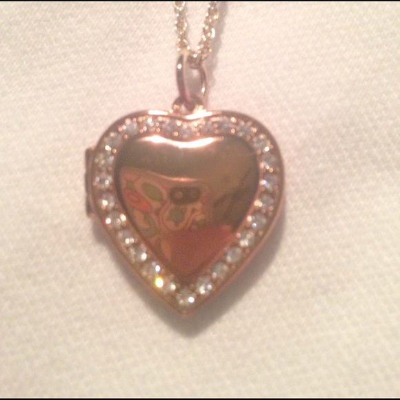The locket itself is a rose-gold more on the golden tone. It has fake diamonds which border it. Thin chain. Can be opened to insert picture. Good gift for a best friend or daughter.