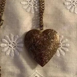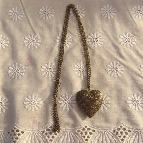 Long chain locket necklace.
