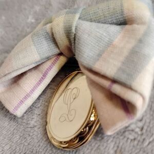 The polished locket with the pastel plaid has an L engraved on the front. Both pins are intact. Rarely used. Price is for both items. Smoke free/Dog friendly home