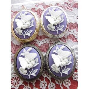 Locket Purple Lavender & White Butterfly Necklace