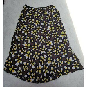 Loco Lindo Womens Small Flare Skirt Pull On Knee-Length Floral Plumeria Brown