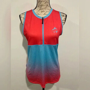 Loco Skailz Performance Sleeveless Fishing Shirt UPF50 Zip Red/Blue Size Large