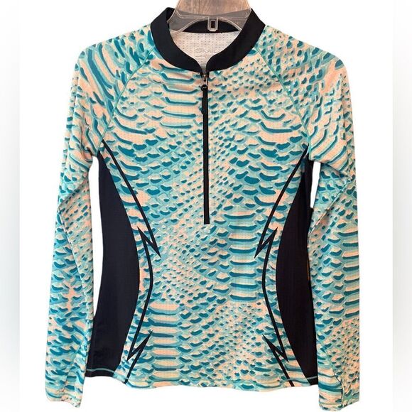 Loco Skaile Sz S Teal Black Sun Fabric Diving Snorkeling Fishing RashGuard Top