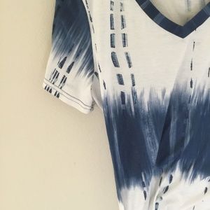 Blue and White Tie Dye; Short Sleeves; V-Neck.