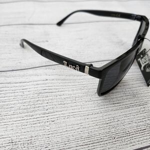 These Locs sunglasses for men offer a combination of urban hardcore with a classic favorite. These sunglasses feature a Locs brand name inscribed in metal, as well as a metal strip at the hinges, a perfect foil for the all-black frame. These sunglasses also have a butterfly-shaped bridge, molded nose pads, square lenses and slim temples. The UV400 lenses come in solid smoke. This pair is great for everyday wear, as this is made of durable, yet lightweight, plastic.