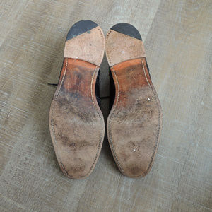 Royal Tweed by Cheaney of England, a division of Church's English Shoes. Fully leather lined with full leather insole. Goodyear welted leather sole and quarter rubber tip. Handcrafted in North Hamptonshire England. Good condition. Pictures show normal wear to soles (inside, bottom, back) and a half inch split in the leather where right shoe laces. (a.k.a. wingtip) OFFERS ENCOURAGED!