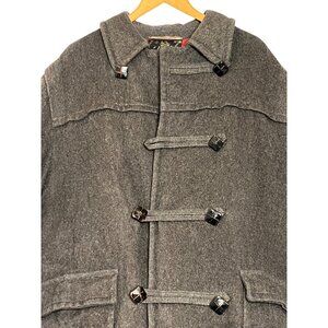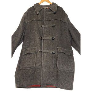 Loden Frey Wool Coat Western Germany Size 50 Gray Red Lining Toggle Closure Flaw