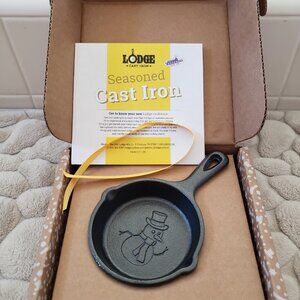 Deck your halls with this 2021 limited edition Holiday Mini Skillet! This year's design features a snowman on the cooking surface and the Lodge logo with year cast on the back. It comes in a decorative gift box, and makes a great addition to your tree or a unique stocking stuffer for friends and family.