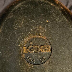 This rusty crusty Lodge cast iron skillet is an authentic pan for the cook in your house. It weighs 3lb 1 ounce and measures 15.25 inches long to end of handle.