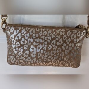Lodis RFID-protected crossbody bag/wallet in a sparkly silver cheetah print,