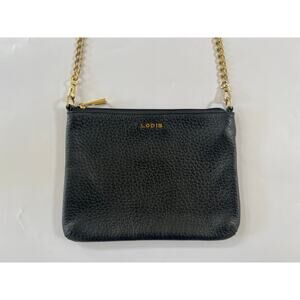 Lodis Black Vegan Leather Gold Chain Crossbody Purse Handbag Glam Career