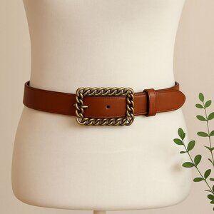Lodis Brown Leather Belt with Chain Detail Buckle – Genuine Leather Size S, Classic Boutique Accessory, Chic Vintage-Inspired Fashion