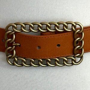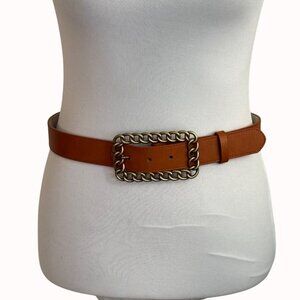 Lodis Brown Leather Belt Size S Chain Detail Buckle Chic Vintage Inspire Fashion