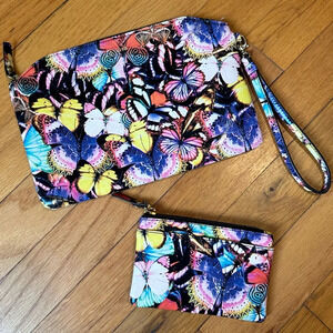 Lodis Dustine Eifel beautiful bright butterfly graphic print wristlet clutch bag purse and matching coin purse wallet
