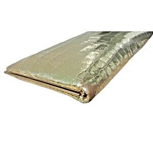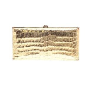 Lodis Croc Gold Framed Metallic Textured Leather Clutch Organizer 7.5”x4”