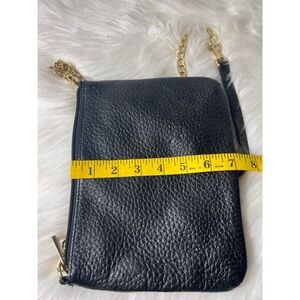Elevate your style with the Black Crossbody Bag. Featuring a sleek design and gold chain accents, this bag is perfect for any occasion.