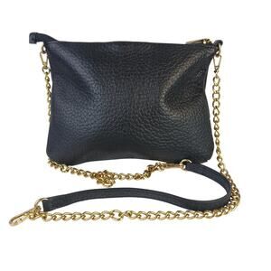 Lodis Emily Convertible Crossbody Purse Black Pebbled Leather Gold Chain