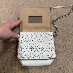 Lodis Leather Crossbody Bag Removable Chain Laser Cut Floral White Square Small Boho Feminine Festival Date Night