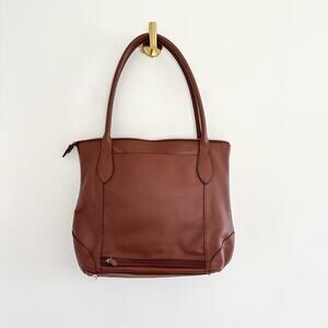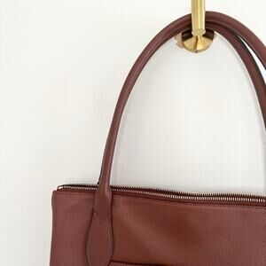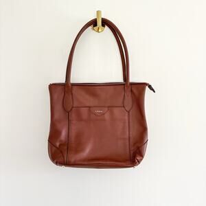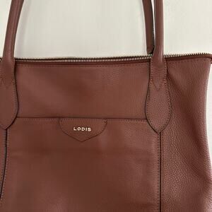 Details: Lodis Leather Zip Around Double Handle Strap Tote Bag - Size: - Color: Brown- Material: - Features: Zipper closure, double-handle strap, leather, logo, lined, outer zip pocket, inner pockets, bottom studs, lightweight, casual.