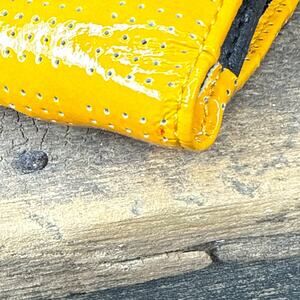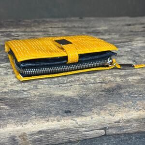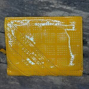 Lodis Mustard Yellow Patent Leather Wallet Perforated Bifold Zip Coin Pocket