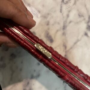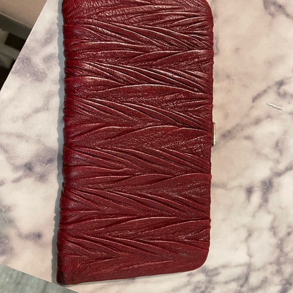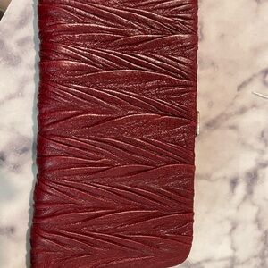 Elegant red wallet with unique textured design. Perfect for stylish organization.