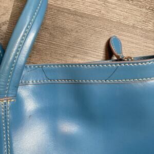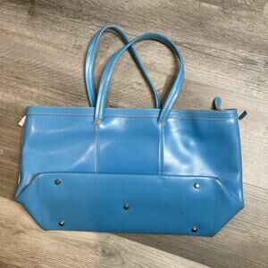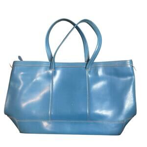 Lodis Women's Blue Leather Business Computer Tote Shoulder Bag Career Durable