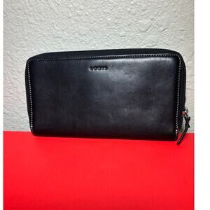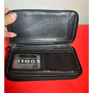 Lodis very soft black leather wallet. 2 compartments , zip clousure. Size-7.5 x 4.5