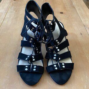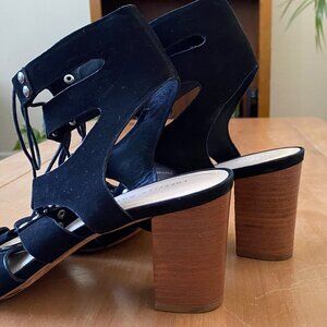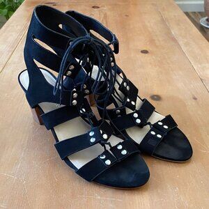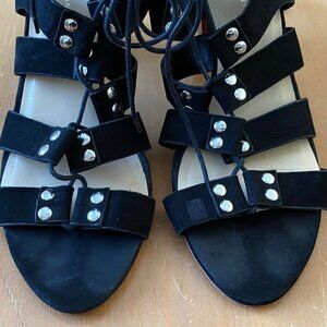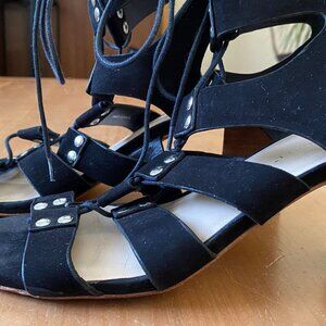 Loeffler Randal Hana Gladiator Sandals Womens Size 10 B Block Heels Black Suede