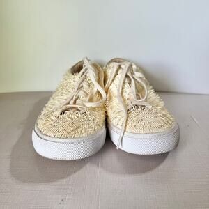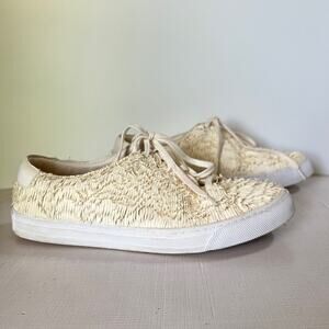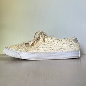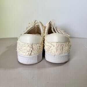 Loeffler Randal Ivory Leather Frayed Fringe Lace Up Sneakers Womens Size 10