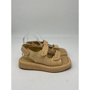 Loeffler Randall Beige Raffia Two Band Platform Sandals Size 6