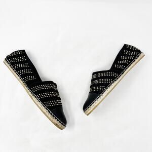 Loeffler Randall Size 9 Black Gold Studded Mara Leather Cap Toe Espadrille Flats