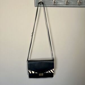 Loeffler Randall Black Leather w/ Animal Print Accent Envelope Crossbody Handbag