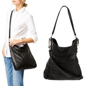 Loeffler Randall Black Studded Genuine Leather Hobo Bag Medium Tote Purse