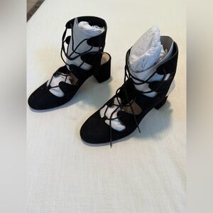 Loeffler Randall Black Suede Lexi Caged Block Heel Pumps Sz 5.5 Laceup with box
