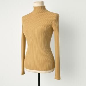 Loeffler Randall Camel Ribbed Knit Mock Neck Long Sleeve Top Women’s Size M