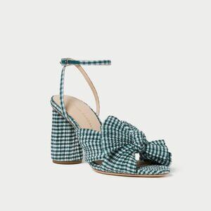 Loeffler Randall Camellia Ankle Strap Heeled Sandals Bow Green Gingham Size 11