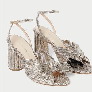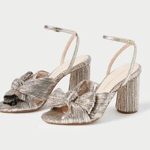 Loeffler Randall Camellia Champagne Pleated Bow Heel Girly Wedding Sz 5