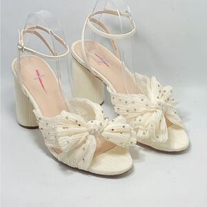Loeffler Randall Camellia Pearl Rhinestone Bow Heel Sandals size 9.5
