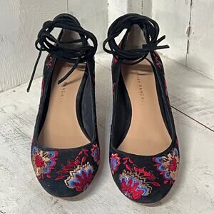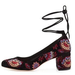 Loeffler Randall Clara Embroidered Suede Ankle-Tie Pumps Black Floral Women 6.5B